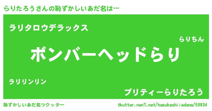 | 意味不明あだ名 | 『住所不定無職らりたろう(43歳)』 |