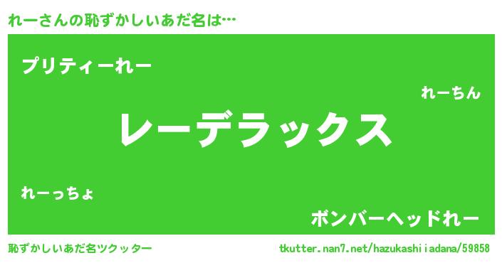 | ヘコむあだ名 | 『れーっふぃ~』『れー(爆)』 |