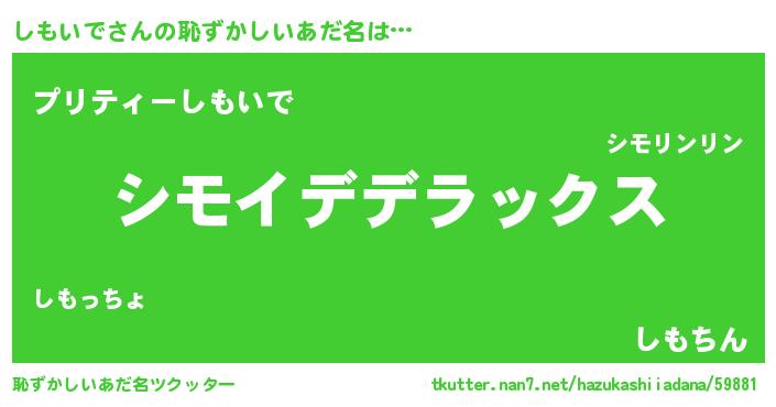 | 女子向けラノベタイトル風あだ名 | 『しもいでなんてお断りですっ。』 |
