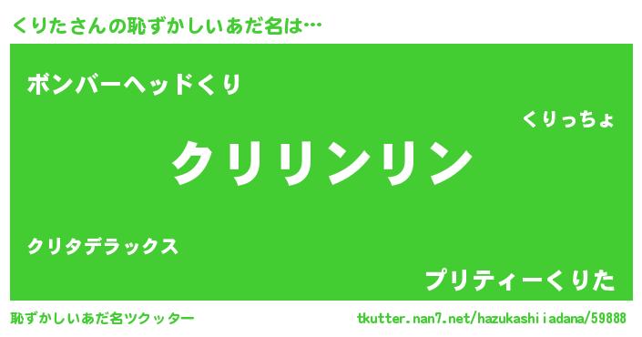| 男性向けラノベタイトル風あだ名 | 『この素晴らしい世界にくりたを!』 |