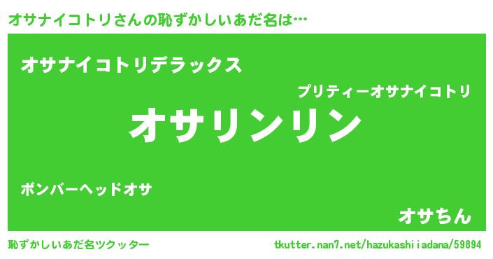 | 胡散臭い通販商品みたいなあだ名 | 『信頼と実績のサプリメント…その名も「オサナイコトリ」』 |