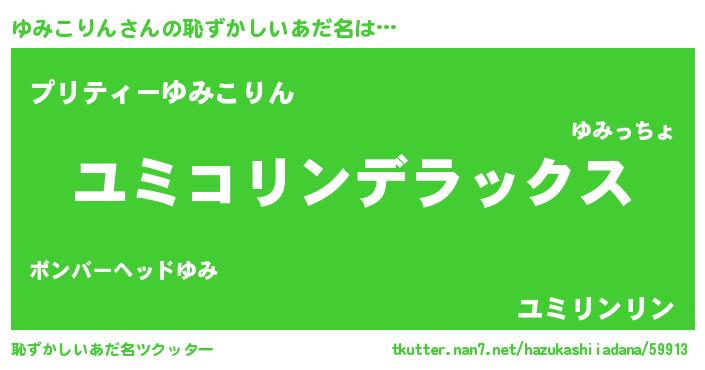 | 男性向けラノベタイトル風あだ名 | 『Re:ゆみこりんから始める異世界生活』 |