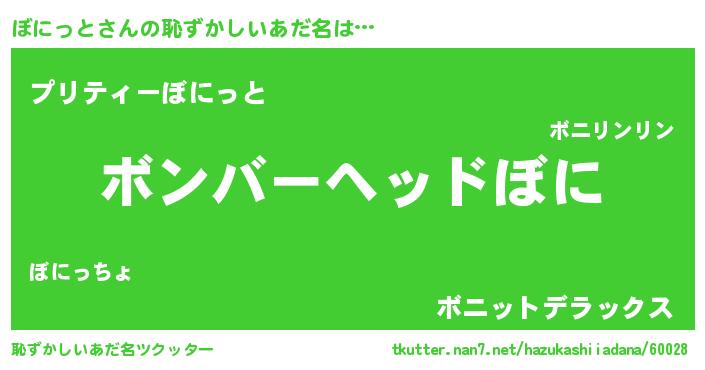 | ヒーロー風カッコイイあだ名 | 『仮面ボニダー』『天空の使者ぼにっと』 |
