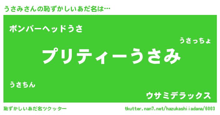 | 胡散臭い通販商品みたいなあだ名 | 『億万長者になれるブレスレット…その名も「うさみ」』 |
