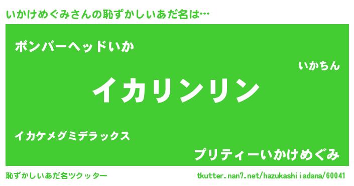 | 男性向けラノベタイトル風あだ名 | 『いかけめぐみの嫁は女の子じゃないと思った?』 |