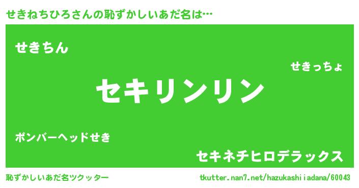 | ヘコむあだ名 | 『せきを』『せきねちひろ(小並感)』 |