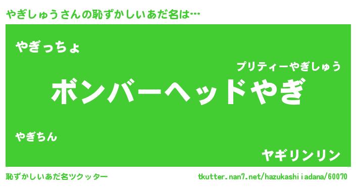 | ヘコむあだ名 | 『豆乳』『やぎっぺ』『やぎにー』 |
