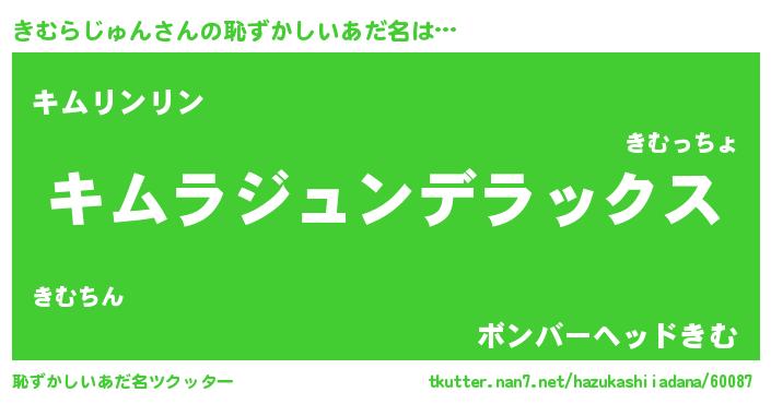 | 男性向けラノベタイトル風あだ名 | 『Re:きむらじゅんから始める異世界生活』 |