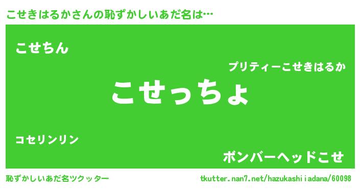 | 肩書あだ名 | 『こせきはるか教官』『こせきはるか校長』 |