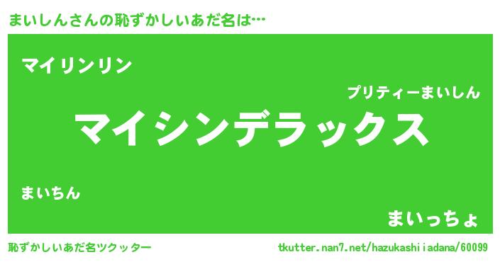 | ヒーロー風カッコイイあだ名 | 『ウルトラ戦士マイシン』『天弓騎士マイ』 |