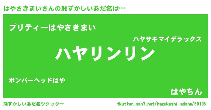 | 意味不明あだ名 | 『住所不定無職はやさきまい(40歳)』 |