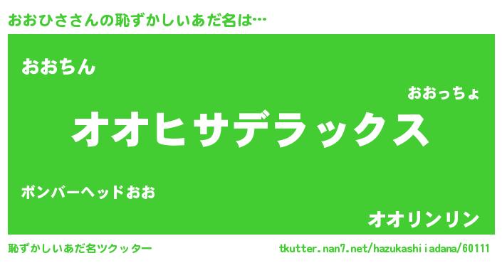 | 意味不明あだ名 | 『自称おおひさ』『永久保存おおひさ』 |
