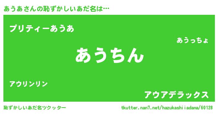 | 意味不明あだ名 | 『永久保存あうあ』『ペロリンあうあ』 |