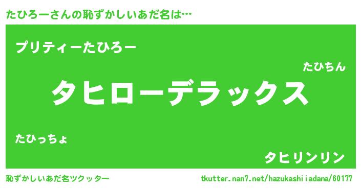 | ヒーロー風カッコイイあだ名 | 『ウルトラ戦士タヒロー』『魔戒騎士タヒ』 |