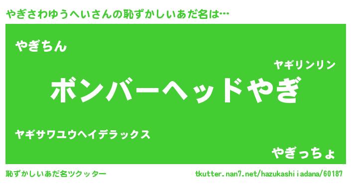 | 欧米人風あだ名 | 『ダレノガレやぎさわゆうへい』 |