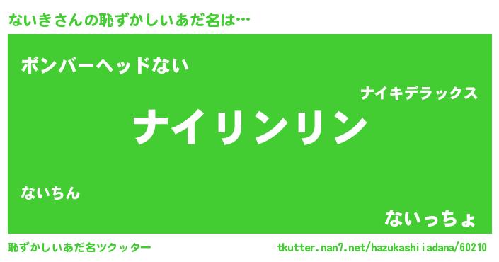 | 意味不明あだ名 | 『とにかく怪しいないき』『自称ないき』 |