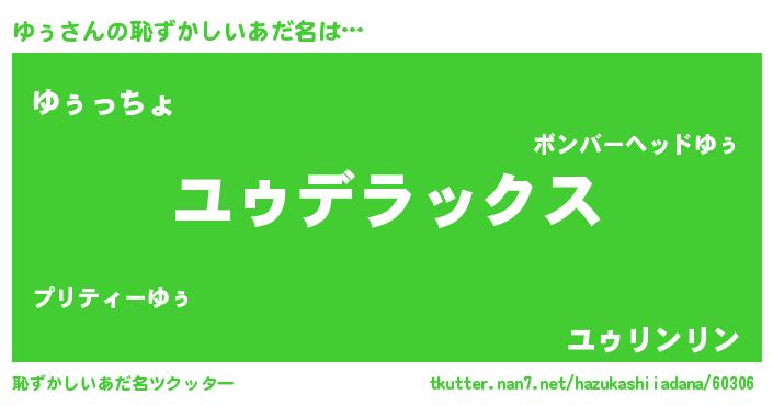 | ヒーロー風カッコイイあだ名 | 『サイバー戦士ユゥ』『ウルトラゆぅマン』 |