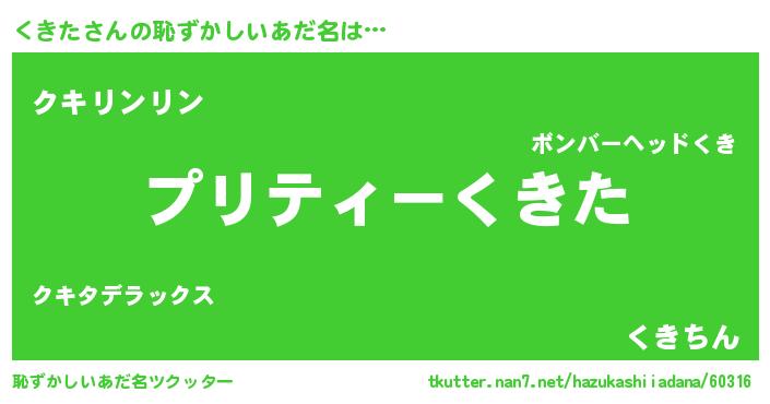 | 意味不明あだ名 | 『ペロリンくきた』『永久保存くきた』 |