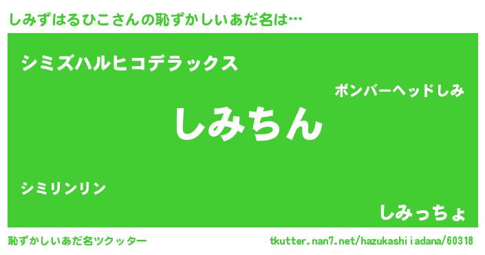 | 意味不明あだ名 | 『永久保存しみずはるひこ』 |