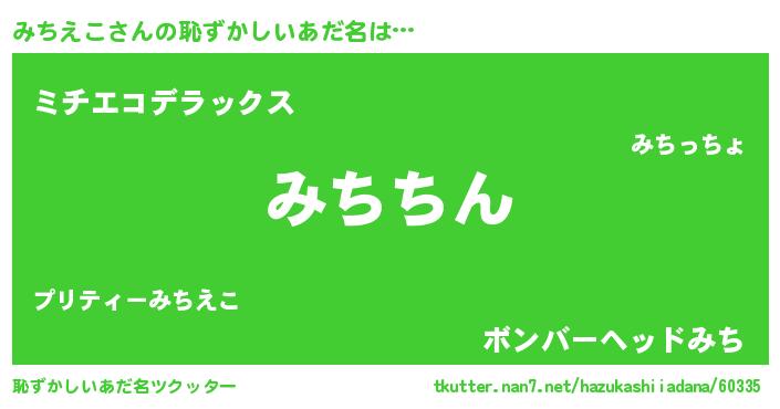 | 意味不明あだ名 | 『永久保存みちえこ』『自称みちえこ』 |