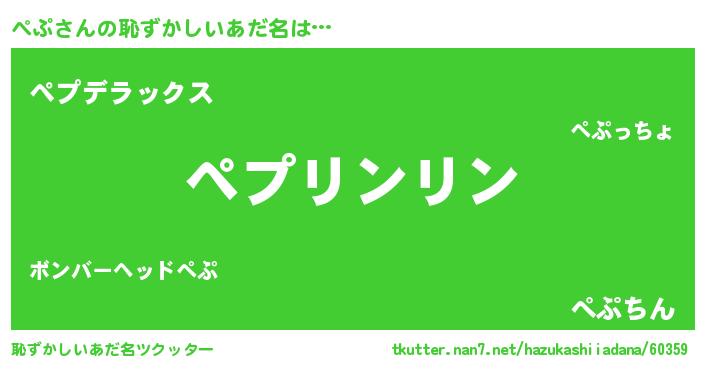 | 意味不明あだ名 | 『とにかく怪しいぺぷ』『自称ぺぷ』 |