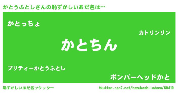| ヒーロー風カッコイイあだ名 | 『仮面カトダー』『ネオカトウフトシ』 |