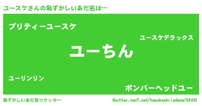 | ヒーロー風カッコイイあだ名 | 『仮面ユーダー』『ネオユースケ』 |