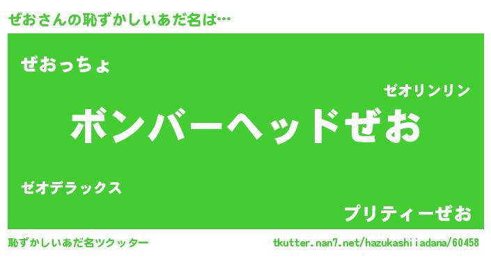 | 意味不明あだ名 | 『住所不定無職ぜお(74歳)』『ペロリンぜお』 |