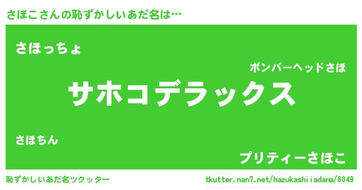 | 男性向けラノベタイトル風あだ名 | 『Re:さほこから始める異世界生活』 |