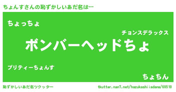| ヘコむあだ名 | 『なまこ酢』『ちょんす(小並感)』 |