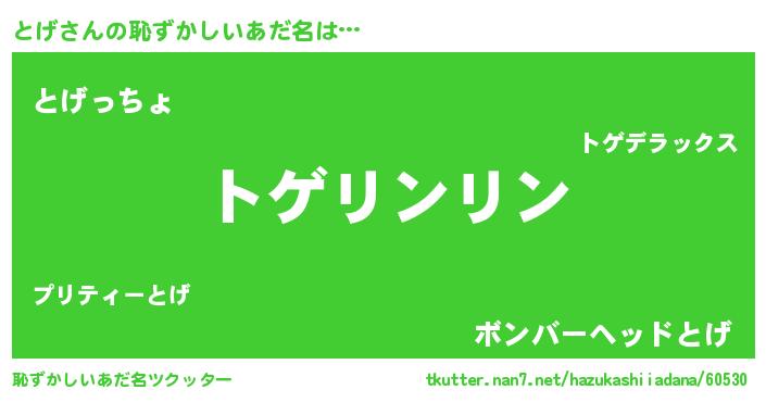 | ヘコむあだ名 | 『とげっ子』『牛乳』『とげもー』 |