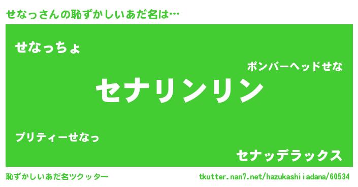 | ヘコむあだ名 | 『せなっぺ』『なまこ酢』『せなにー』 |