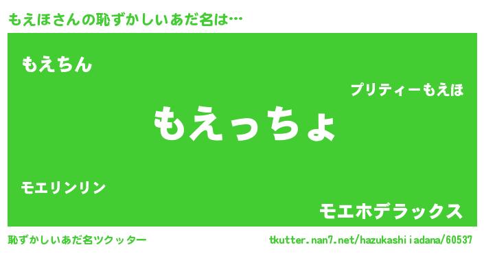 | 意味不明あだ名 | 『住所不定無職もえほ(85歳)』『自称もえほ』 |