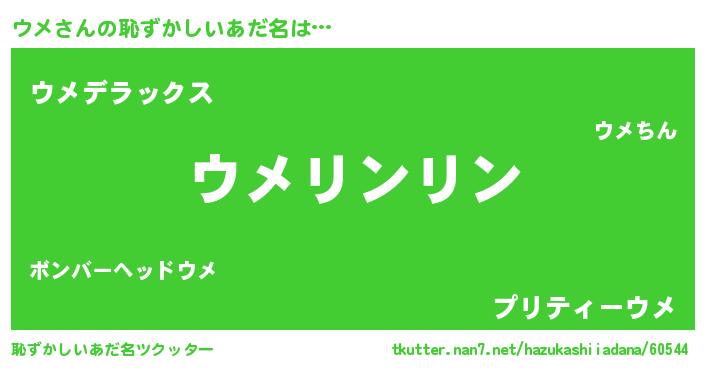 | 男性向けラノベタイトル風あだ名 | 『ダンジョンにウメを求めるのは間違っているだろうか』 |