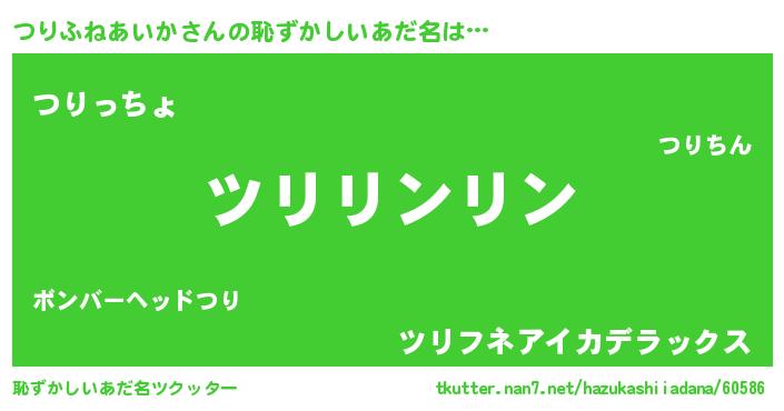| 意味不明あだ名 | 『とにかく怪しいつりふねあいか』 |