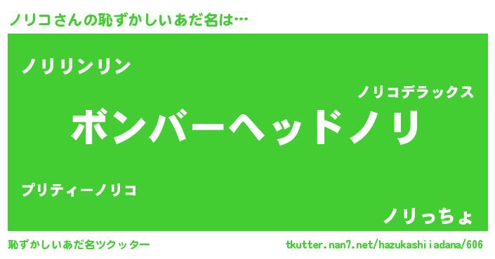 | ヒーロー風カッコイイあだ名 | 『慈愛の使者ノリコ』『炎刃騎士ノリ』 |