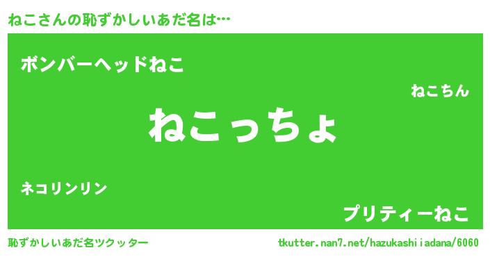 | 女子向けラノベタイトル風あだ名 | 『ねこの雑貨屋さん』『死神ねこの再婚』 |