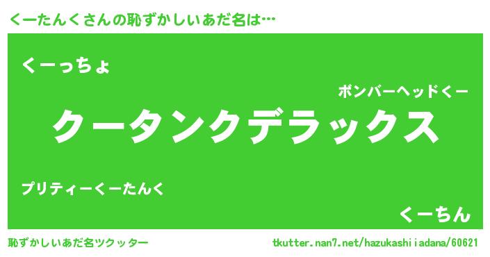 | 意味不明あだ名 | 『自称くーたんく』『永久保存くーたんく』 |