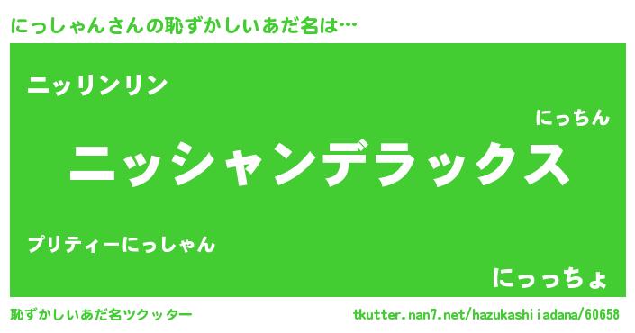 | 男性向けラノベタイトル風あだ名 | 『この素晴らしい世界ににっしゃんを!』 |