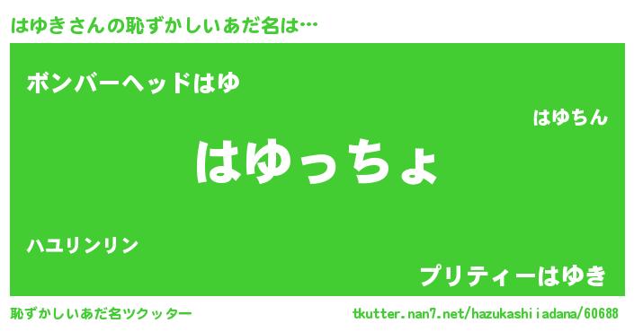 | ポケモン風あだ名 | 『ハユキダネ』『ハックウザ』 |