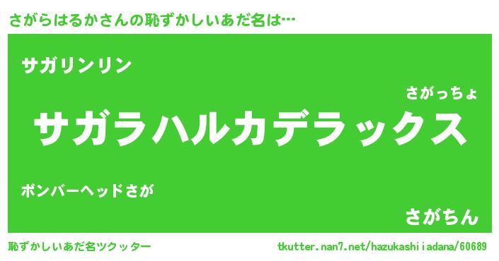 | 男性向けラノベタイトル風あだ名 | 『Re:さがらはるかから始める異世界生活』 |
