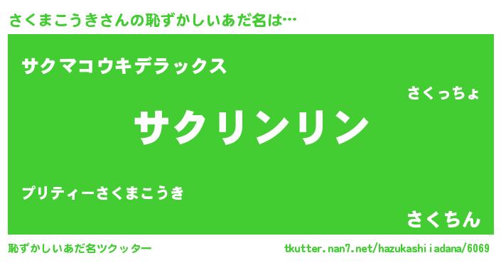 | ヘコむあだ名 | 『さくぷりん』『さくまこうき(笑)』 |