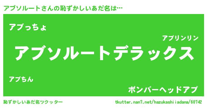 | 女子向けラノベタイトル風あだ名 | 『アブソルートなんてお断りですっ。』 |