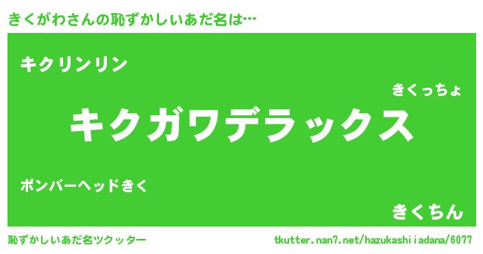 | 意味不明あだ名 | 『自称きくがわ』『永久保存きくがわ』 |