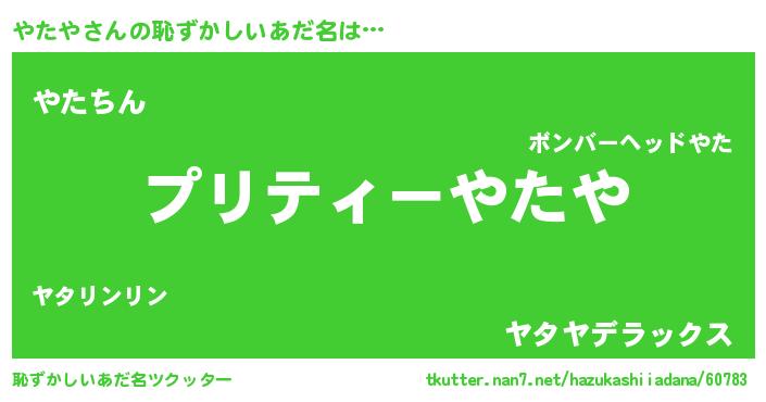 | 意味不明あだ名 | 『ペロリンやたや』『永久保存やたや』 |