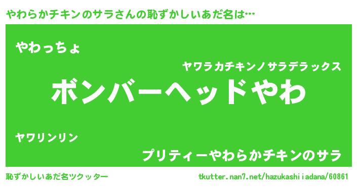 | 意味不明あだ名 | 『めかぶ科やわらかチキンのサラ属』 |