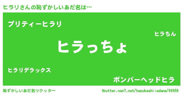 | 意味不明あだ名 | 『ヒラリフォーエバー』『ペロリンヒラリ』 |
