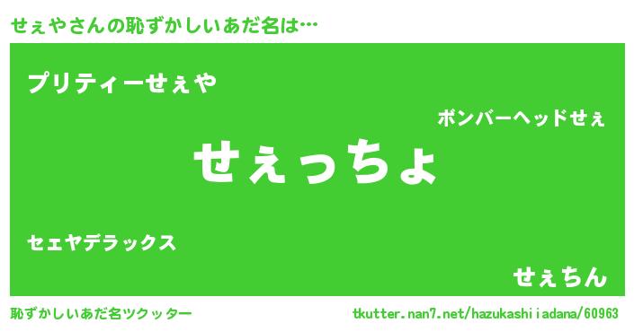 | ヒーロー風カッコイイあだ名 | 『仮面セェダー』『ウルトラせぇやマン』 |