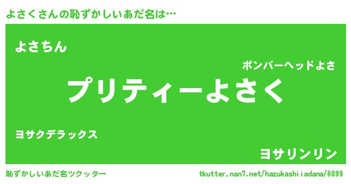 | 意味不明あだ名 | 『ペロリンよさく』『永久保存よさく』 |
