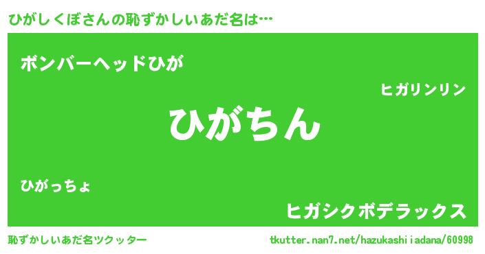 | ヘコむあだ名 | 『ひがしくぼ(笑)』『ひがっぺ』 |